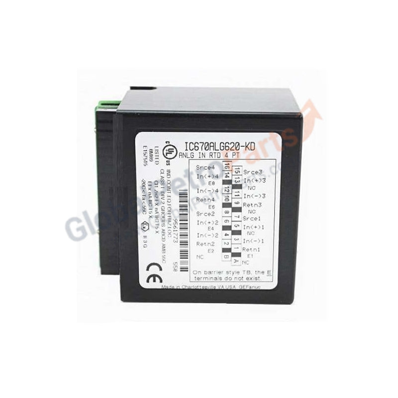 The IC670ALG620 (Model: IC670ALG620) is a high-precision analog input module specifically designed for Resistance Temperature Detector (RTD) acquisition within the GE Fanuc Field Control I/O family. This module provides four independent channels capable of interfacing with 3-wire and 4-wire RTD sensors, converting low-level resistance signals into high-resolution digital data. The IC670ALG620 (Part Number: IC670ALG620) is engineered for critical thermal monitoring in industrial processes where temperature accuracy and sensor lead compensation are vital for system stability.