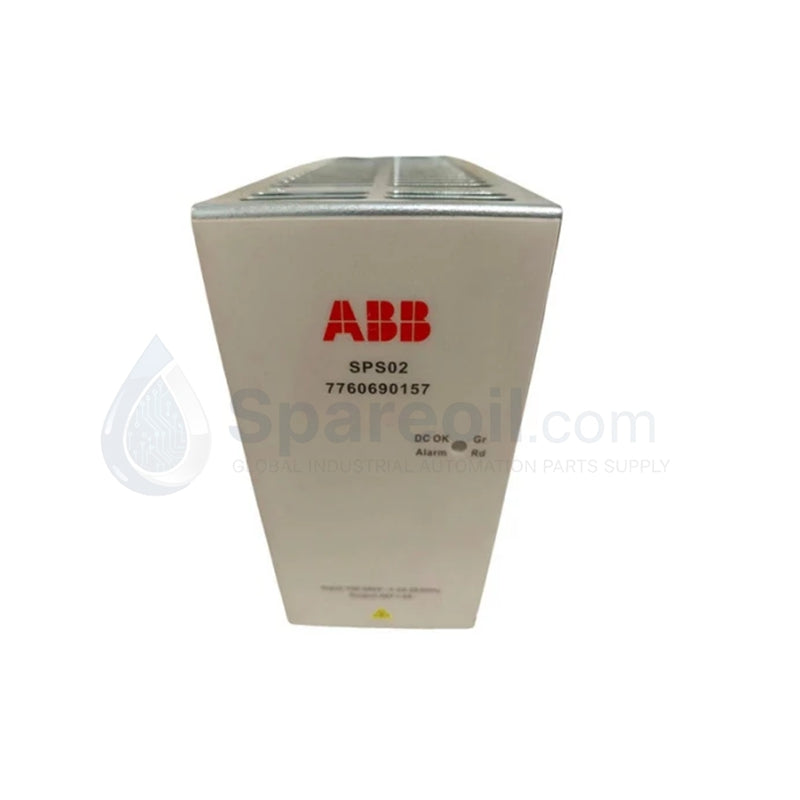 The ABB SPS02 (Order Number: 2VAA008279R001, Part Number: 7760690157) is a high-capacity industrial power supply unit designed for the Symphony Plus and INFI 90 distributed control system (DCS) architectures. Providing a regulated 24V DC output at a 20A current rating, the SPS02 offers double the capacity of the SPS01, making it the primary choice for powering large-scale controller racks, extensive I/O subsystems, and high-demand field instrumentation. This unit is engineered for mission-critical applications, supporting N+1 redundancy and hot-swappable replacement to ensure zero downtime. Its robust electrical design features advanced EMI suppression and a wide-range AC input, delivering stable power in the electrically noisy environments of power plants and refineries.