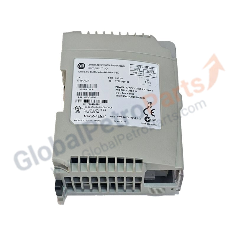 The 1769-ADN is a DeviceNet communication adapter that enables 1769 Compact I/O modules to operate as a distributed I/O station on a DeviceNet network. Using the Common Industrial Protocol (CIP), it provides seamless data collection, control, and configuration between plant-floor devices—such as sensors and actuators—and a master controller.